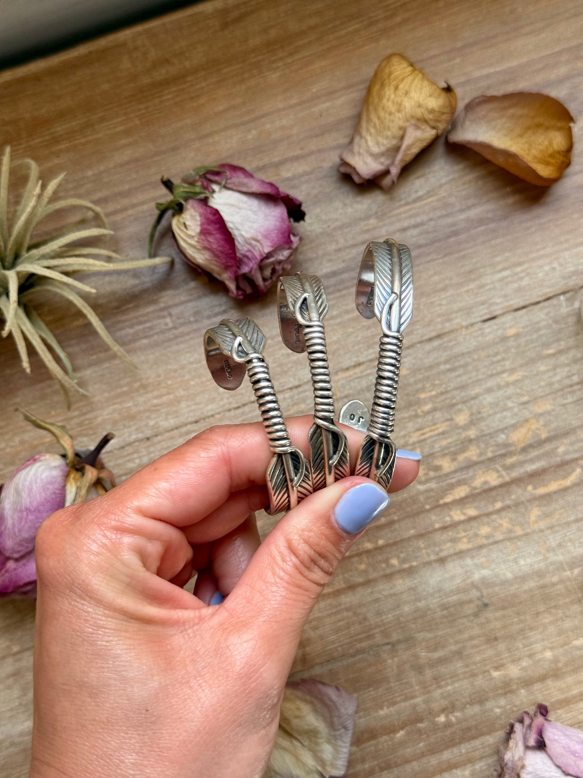Solid sterling silver Hudson Feather cuff